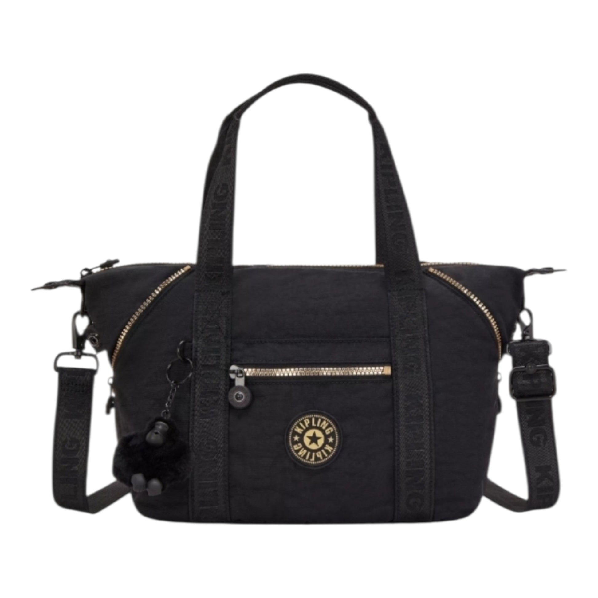 Descubra la elegante cartera Art Mini Kipling negra con detalles dorados. Con un diseño compacto pero espacioso, esta cartera es perfecta para guardar todos sus elementos esenciales de manera organizada.