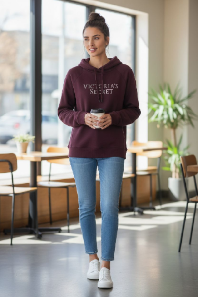 Polerón Victoria’s Secret en talla XS, pero equivale perfectamente a una S, ideal si buscas un calce cómodo y ligeramente amplio. Su diseño moderno con capucha, bolsillo canguro y el icónico logo frontal lo hacen perfecto para un look casual con estilo. Perfecto para usar todos los días, combinar con jeans o leggings y lucir un outfit relajado pero chic. ¡Una prenda hermosa y versátil para tu clóset!